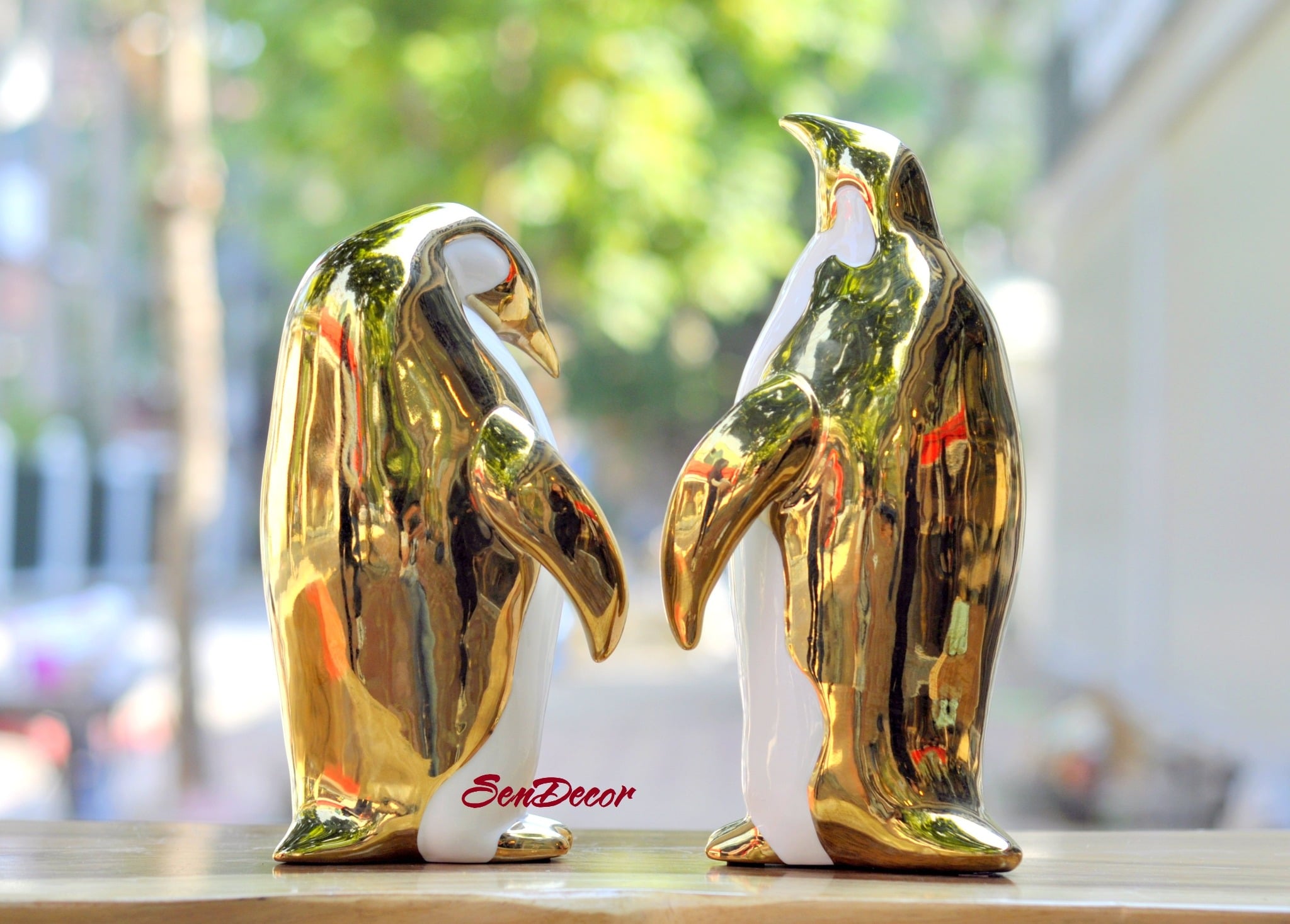 Thông số kích thước: Cặp chim Cánh cụt Decor cao cấp với tạo hình ngộ nghĩnh đẹp mắt mang lại cảm giác vui tươi thư giãn với phong cách trẻ trung hiện đại, tân hoàng gia sang trọng * Chất liệu Gốm mạ Vàng Nano cao cấp * Kích thước: cao 30cm x rộng 18cm x sâu 12cm - cao 27cm x rộng 18cm x sâu 12cm - Kích thước: Cao 53 x rộng 27cm x sâu 14cm - Phù hợp với phong cách Decor trang trí hiện đại - Hoàng gia. Ngoài ra sẽ là món quà thật ý nghĩa dành tặng cho đối tác, bạn bè, người thân vào các dịp tân gia, ngày cưới, sinh nhật ...