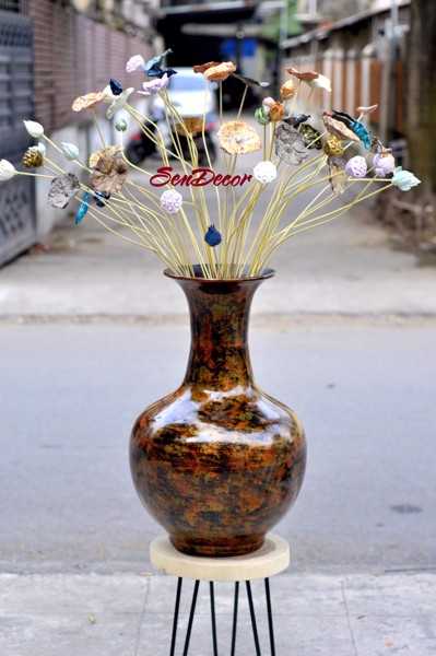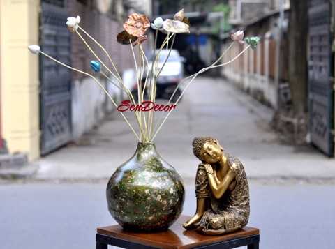 Hoa Sen Sơn Mài: được chế tác từ phôi bột gỗ, phủ Sơn mài thủ công, thân bằng tre - độ dài : 80cm - 1m / 1 cành (có thể cắt ngắn bớt cắm cho bình size thấp, bé).