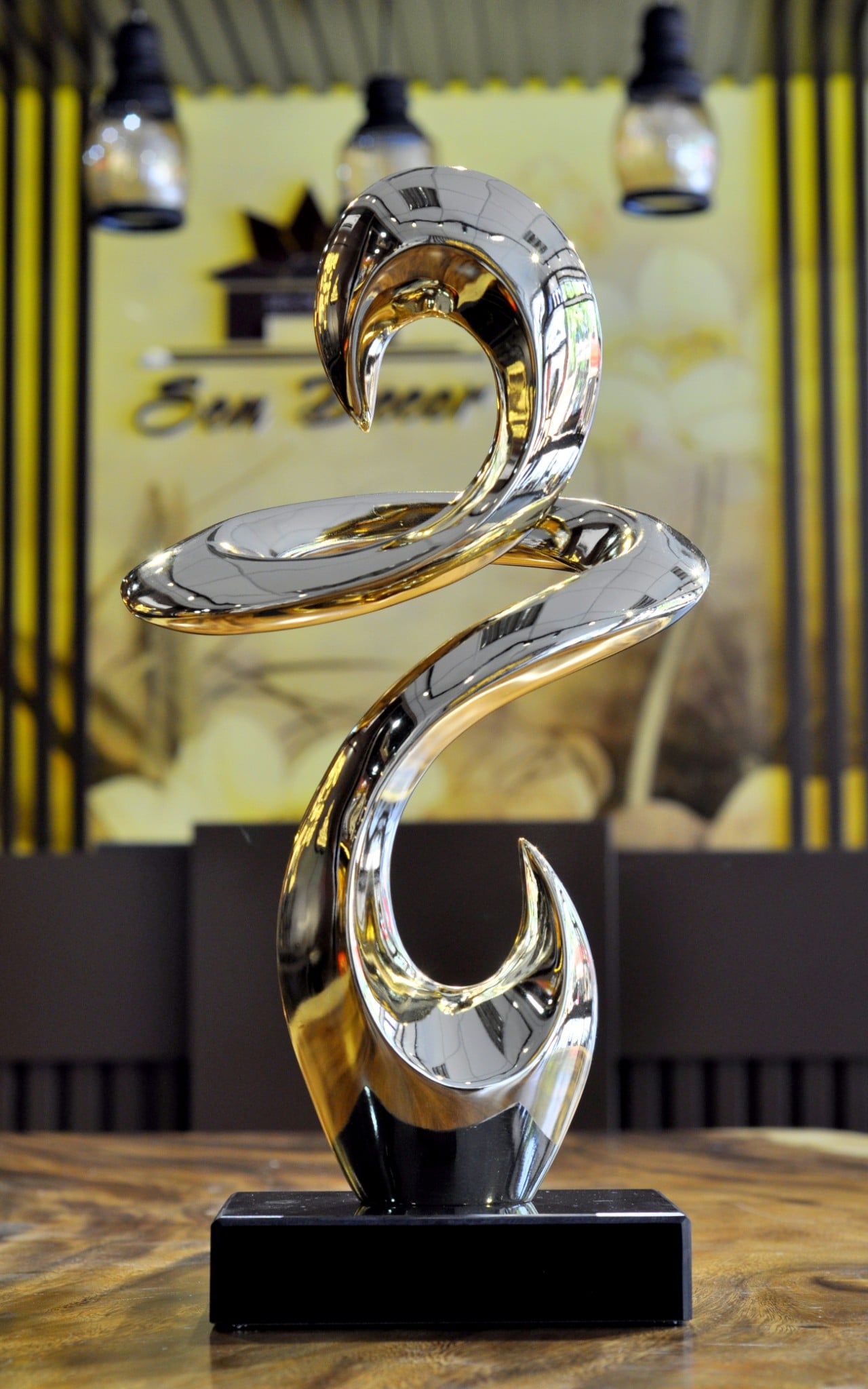 * Kích thước: Cao 51cm x rộng 46cm x sâu đế 12cm * Chất liệu: hợp chất composite cao cấp mạ vàng